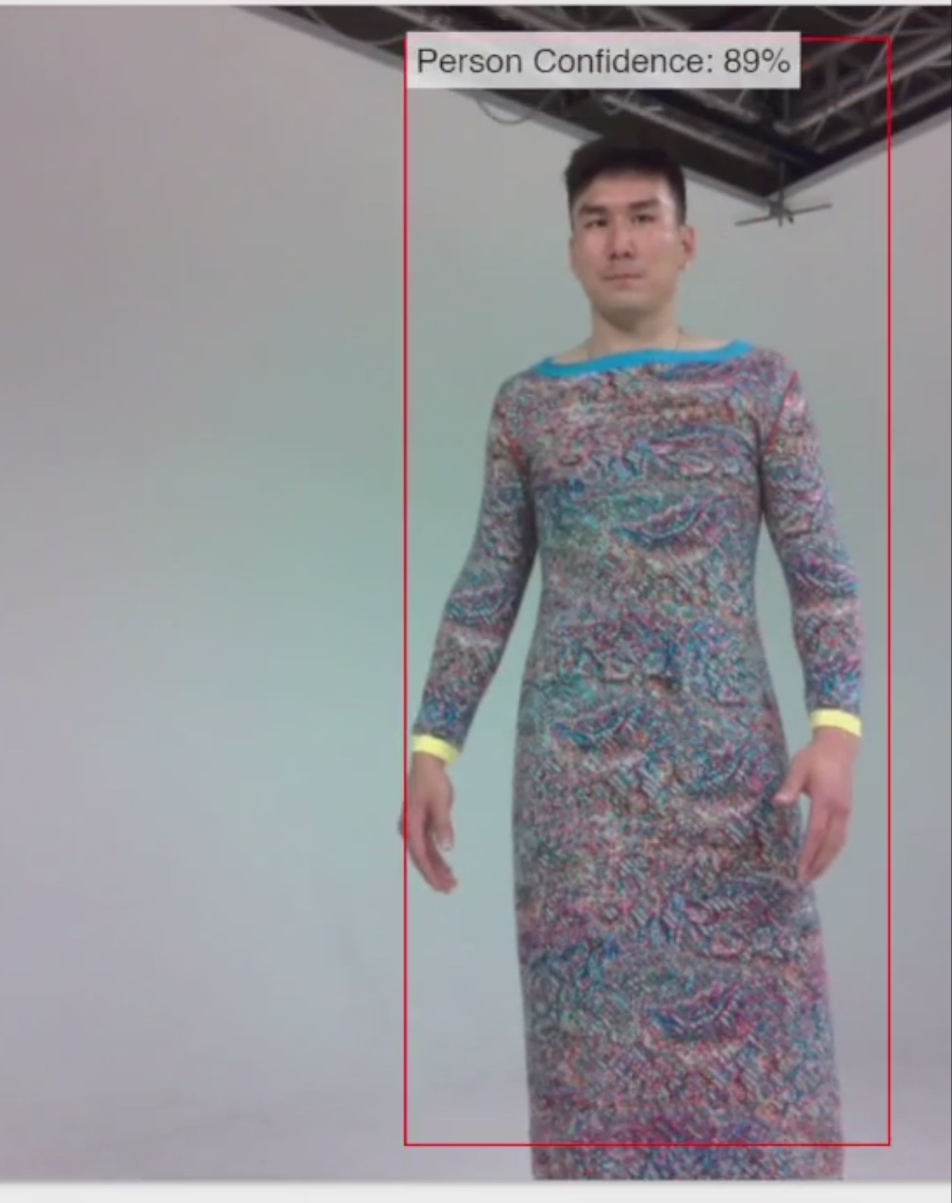 The technological innovation behind this project lies in creating a system capable of transposing adversarial images onto a fabric that can be used to deceive people detectors in real time. By wearing a garment in which an adversarial image is woven, one can protect the biometric data of their face, which either will not be detectable or will be associated with an incorrect category, such as "animal" rather than "person."