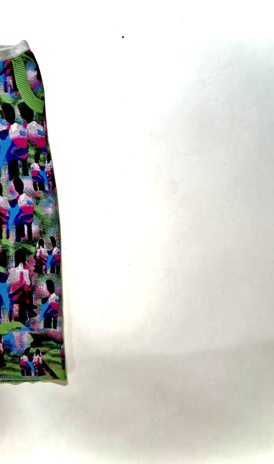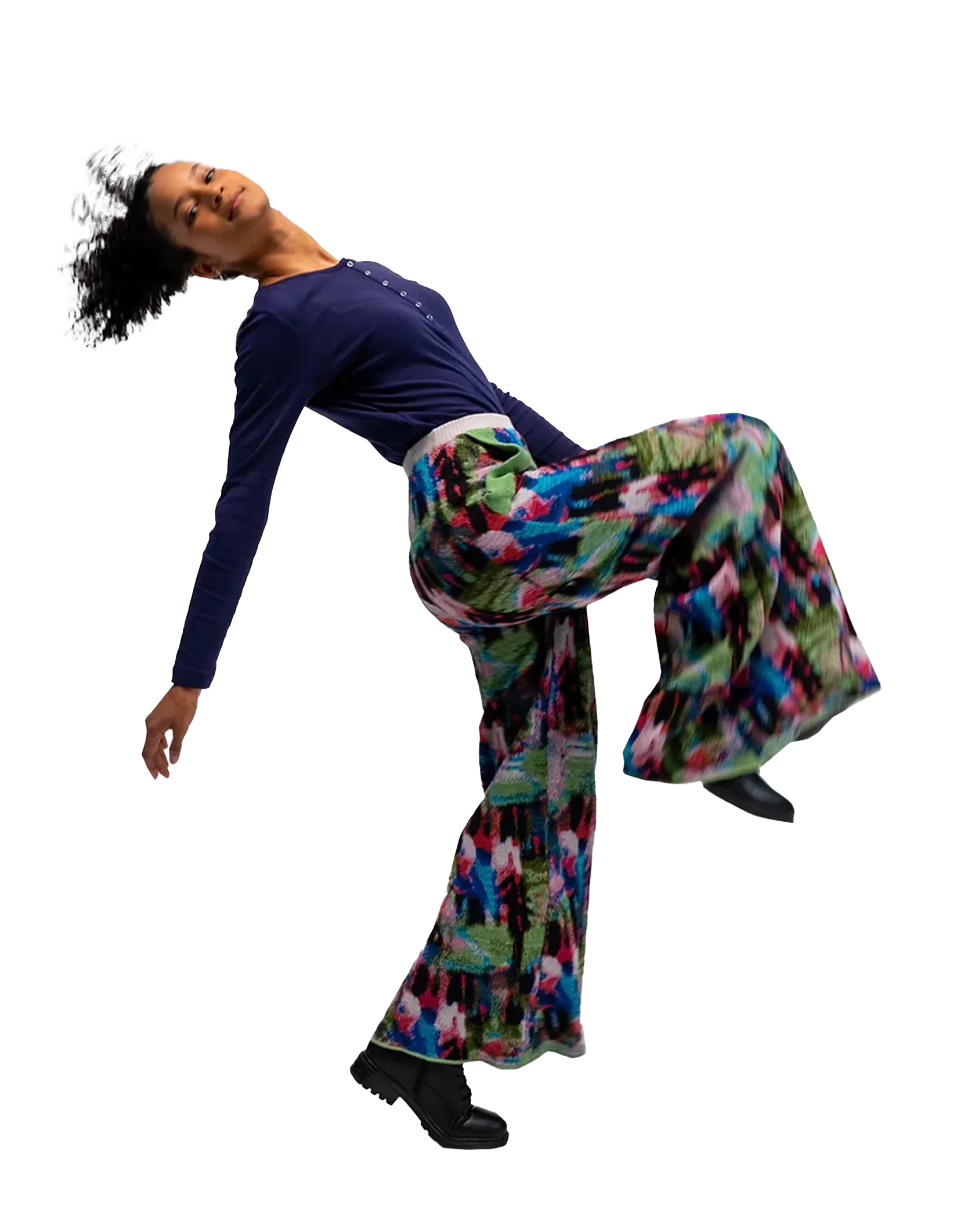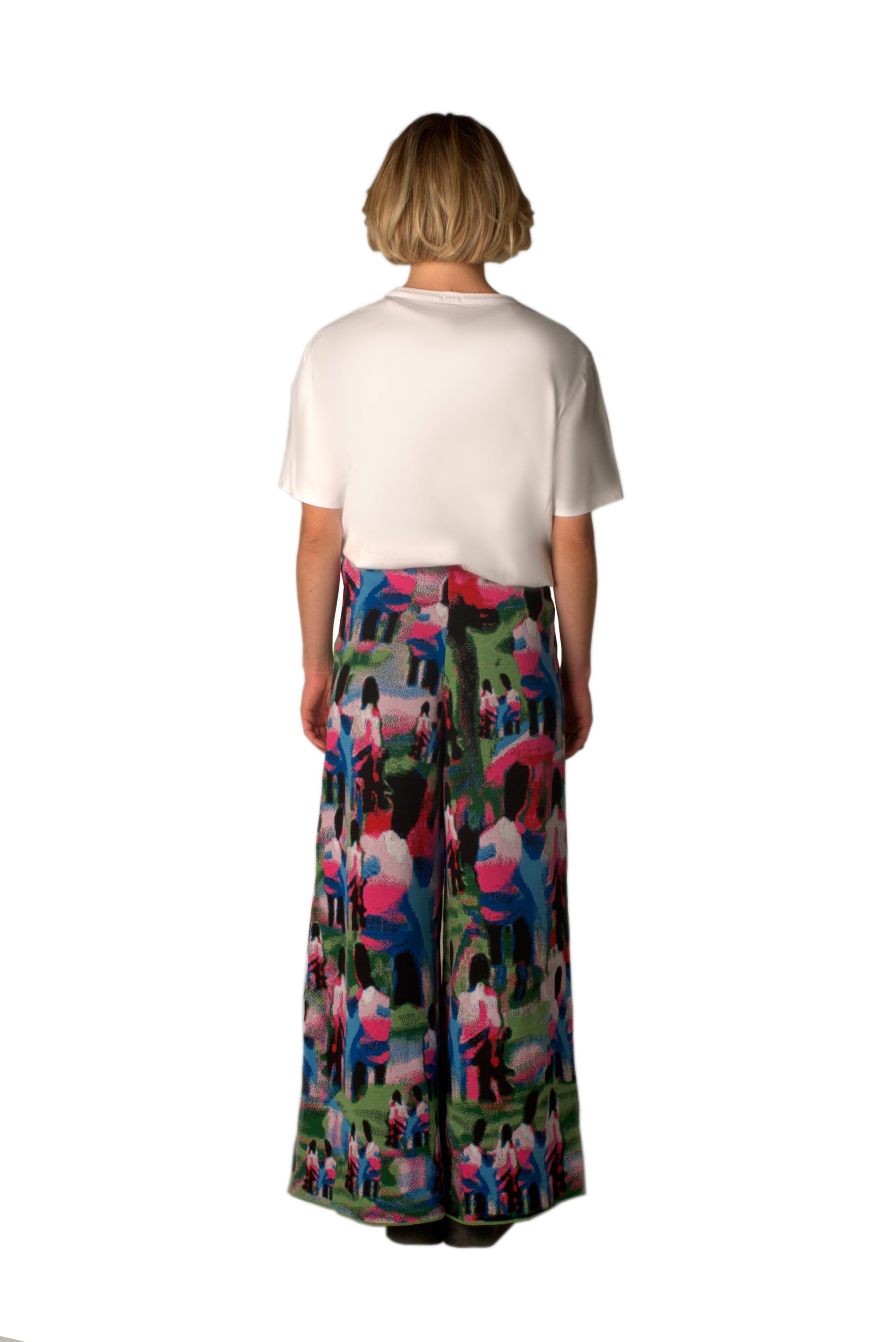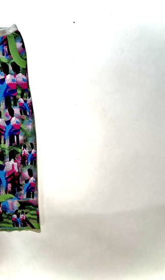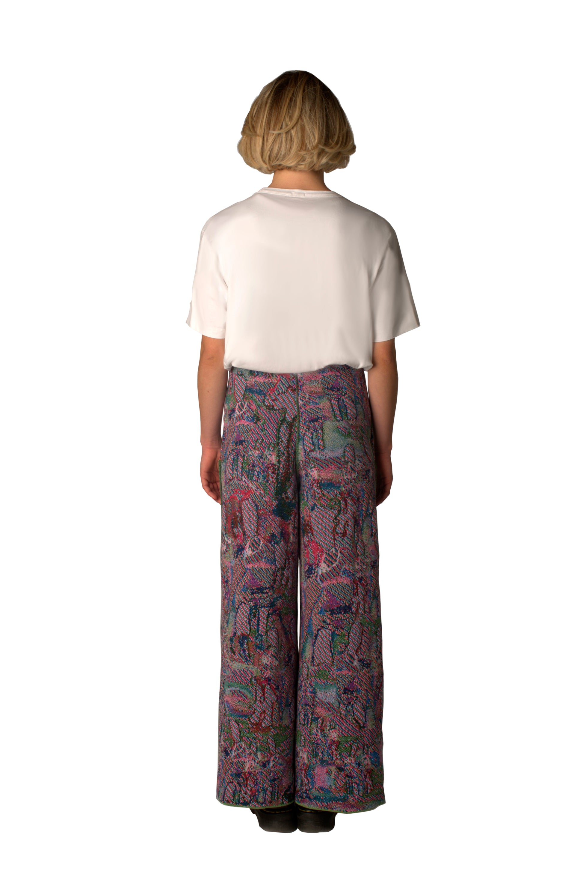 The Pant is part of the MANIFESTO COLLECTION about knitted garments that shield facial recognition.The algorithm on the textile hinders the object recognition software’s capabilities, causing it to not recognize the person wearing this garment. The software can recognize small knitted people in the fabric.